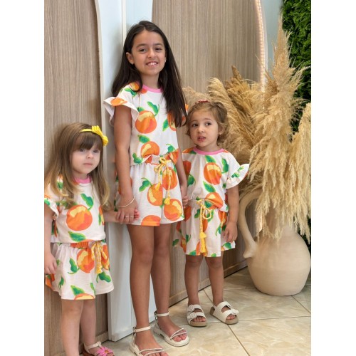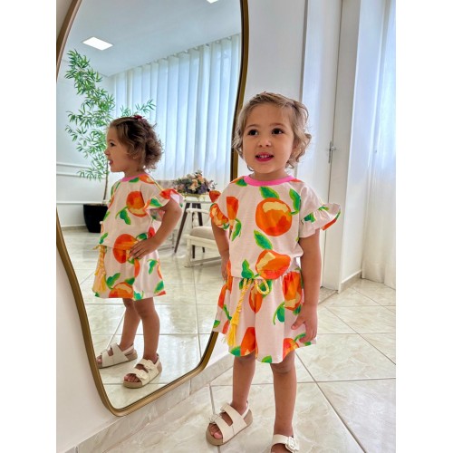 • 8 anos - Blusa36 cm (altura) x 38 cm (largura) | Short: 29 cm (altura) x 37 cm (largura) x 27 cm (cintura)