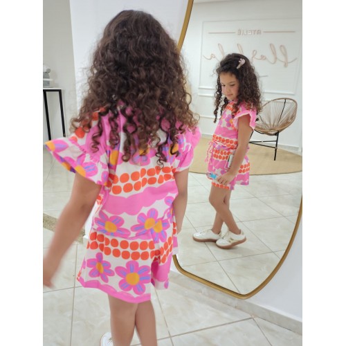 - 6 anos - Blusa: 34 cm (altura) x 36 cm (largura) | Short: 28 cm (altura) x 35 cm (largura) x 25 cm (cintura)